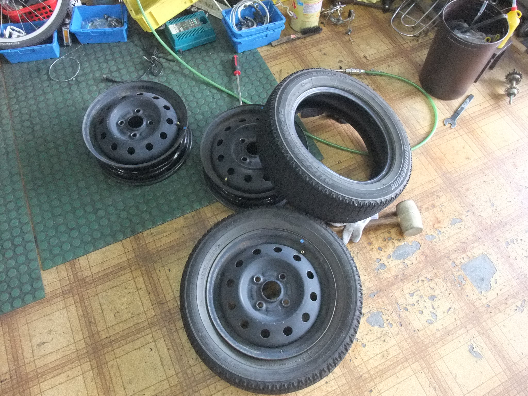 お天気が怪しいのは既に分かっていたけど、自分の事は切羽詰まらないと行動しない、ダメダメな店長、スタッドレスタイヤが寿命なので交換・・・。 しかしヒートテック着て力仕事すると汗だくやん、握力が無くなってきた(@_@;)、てか筋トレやめて早6年、体力なさすぎやし筋力も落ちすぎや~(´;ω;`)ウッ…