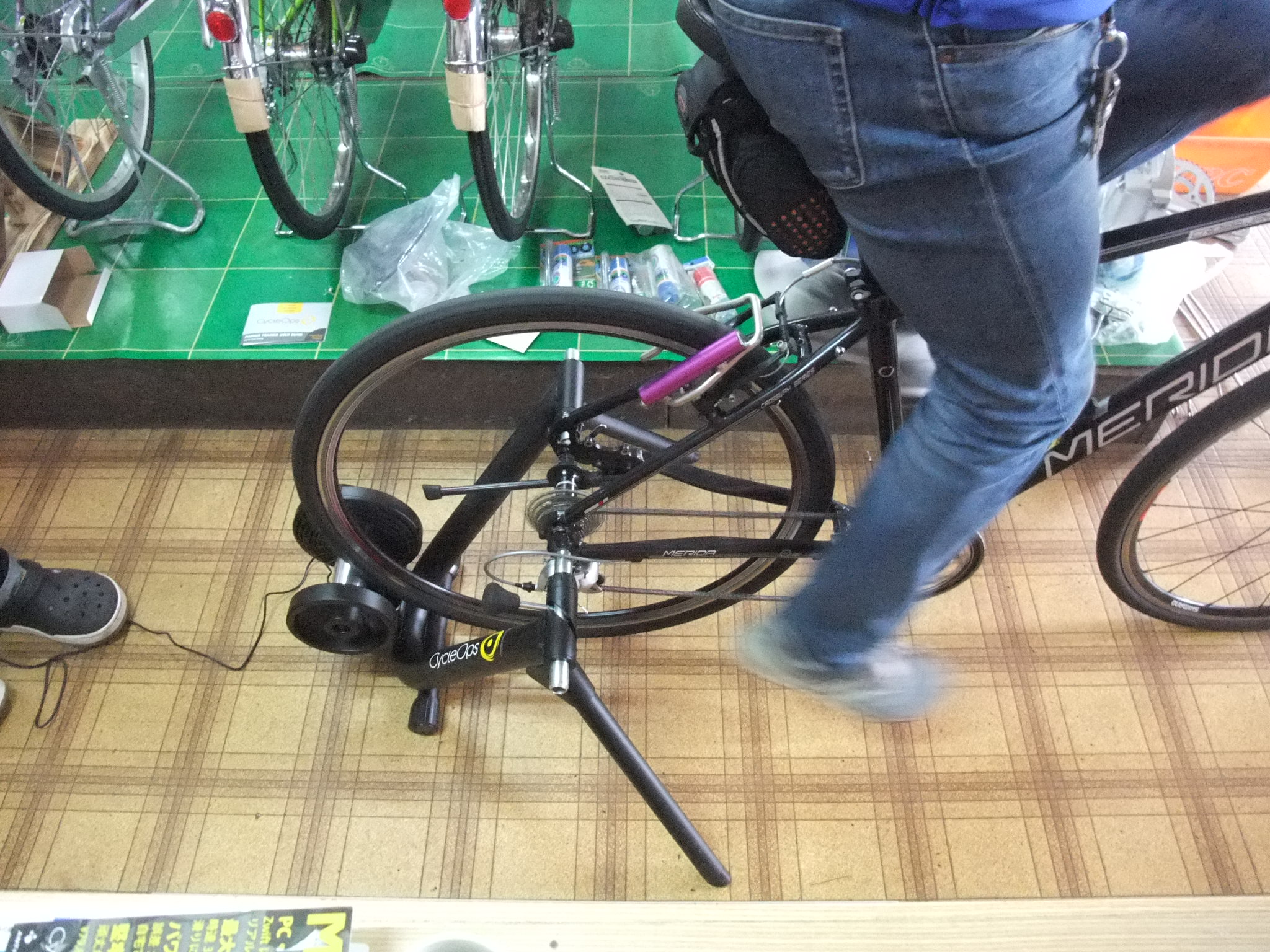 ロードバイクのシーズン到来ですが、花粉の季節もまたまた到来(ノД`)・゜・。、外を走りたくても既に鼻はムズムズして集中出来ず、マスクをすると息が上がるし目も痒い・・・はぁ~まだロードバイクは乗れないのか・・・と嘆かないで下さい。 ローラーでズイフトがあるじゃないですか!w(ゝω・)wハー!、スマートローラーならば、画面の坂に合わせて負荷が自動で変わるので実際の道を走っているのと感覚が近いのでお勧めですが、いやいやそこまで・・・とお考えの方でもとりあえず、お店で体験してみて下さい。 ついついむきになってペダルを回してしまうのがズイフトです。  一度体験してから考えてみては如何でしょうか(・・? ベストシーズンは短くて思うようにライド出来ないとお考えの方にピッタリです。