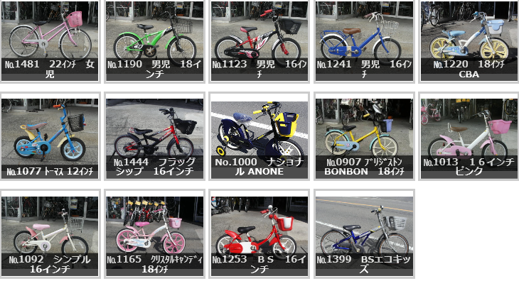 すみません、なかなかタイムリーに更新できていません。子供用レンタル自転車の総台数210台を越えました、只今の在庫はご覧の通りです。子供の自転車を買ってあげられれば、それにこしたことないのですが、すぐにサイズが合わなくなるのでうちも苦労させられました。